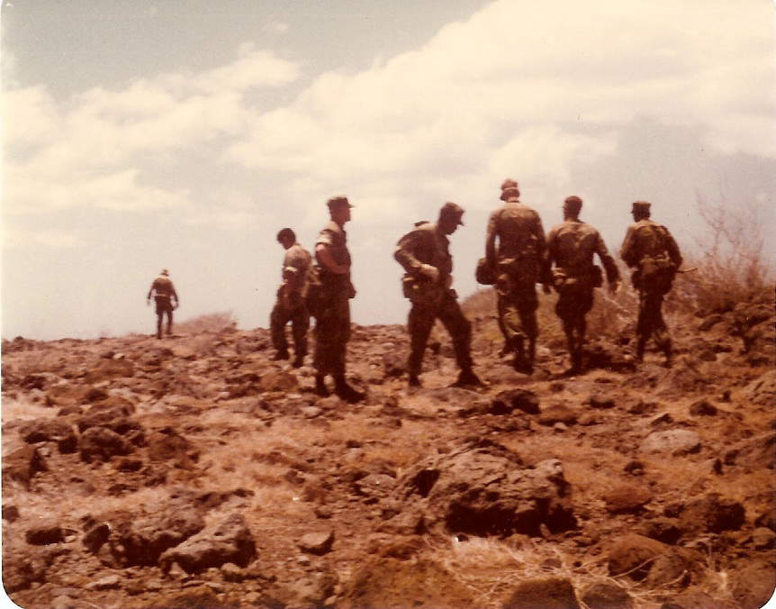 1983 Navy Explosive Ordnance Disposal Team on Kaho'olawe Island searching for unexploded bombs and projectiles.